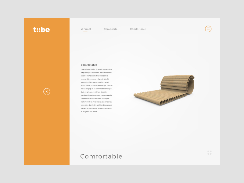 Tube - Interactive web presentation - It is creating a visual identity for a paper product - a chair made from paper tubes, which was designed by a student from a neighboring product design studio. At first, I had to create a logo, which is based on the main parts of the product - paper tubes. I replaced the letter U with 4 circles, which could be perfect for animations. After I had a logo, then I could focus on the main part - designing the microsite. I designed animation for each feature of this paper chair and only from circles. I applied the animations on the microsite. On the homepage, we can see a simple carousel presentation with animations. I also printed some brochures to present this product. I think I have a great idea, rolling these brochures into small tubes, which shows the main feature of this chair.