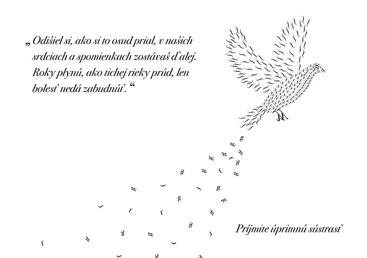 Predmet: Výtvarná kompozícia; Tématické typografické vyobrazenie. Pohladnice k Velkej noci, sviatku zaľúbených, narodeninám ale aj kondolenčné oznámenie.