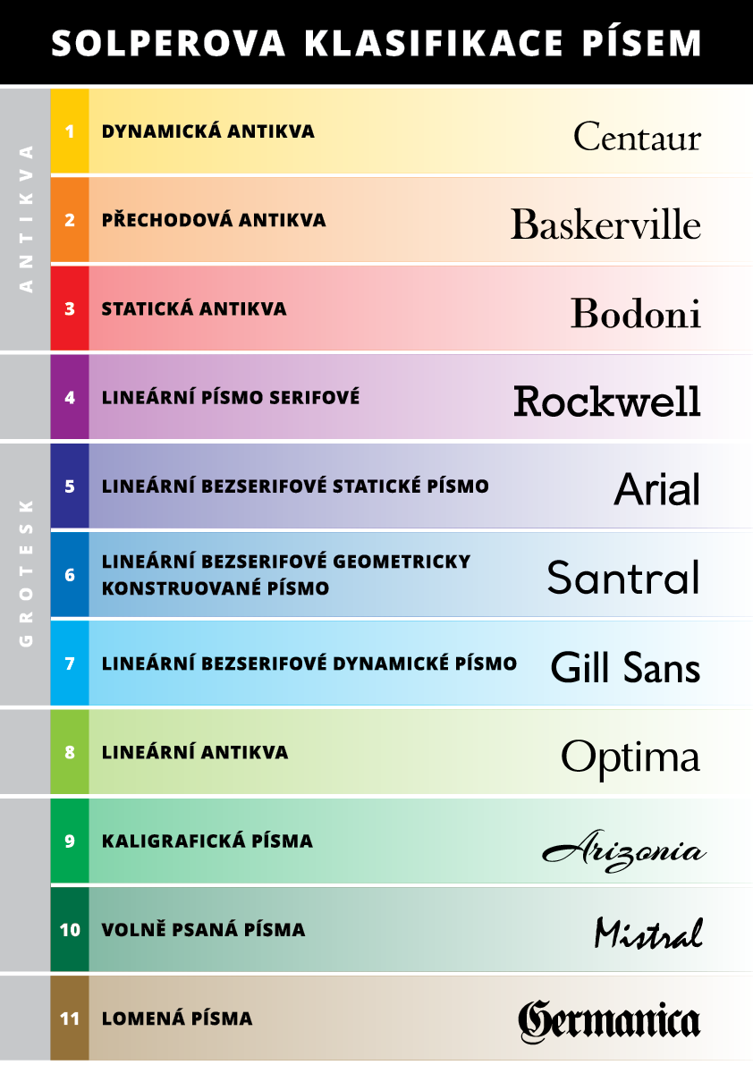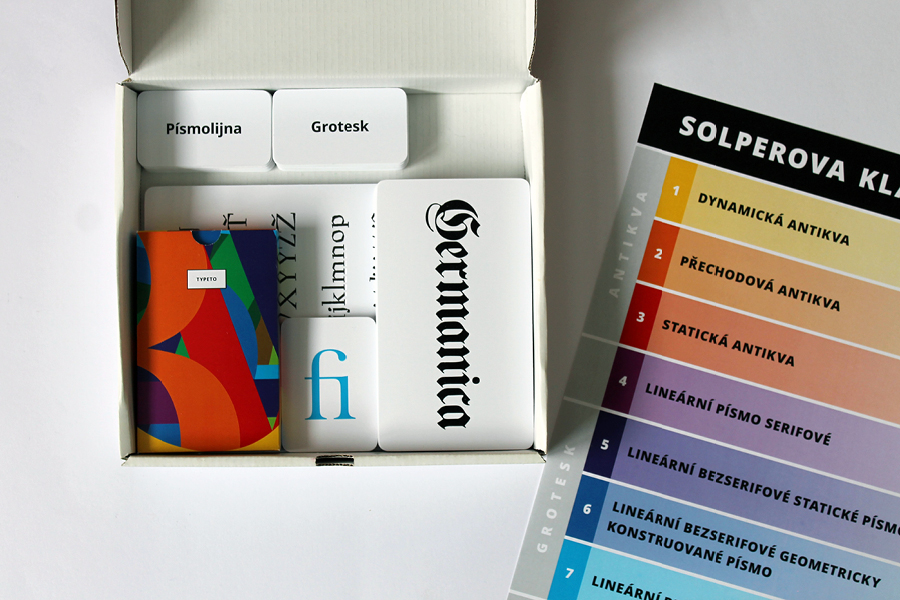Jako volitelné téma klauzurní práce jsem zvolila tvorbu výukových pomůcek do typografie. Pomůcky jsou určené pro obor Grafický design na střední umělecké škole. Navrhla jsem 3 plakáty a sadu kartiček, které vyučujícímu pomáhají vizuálně doplňovat probírané učivo a podněcují větší aktivitu studentů. Po obsahové stránce jsem vycházela z maturitních otázek z předmětu Písmo.