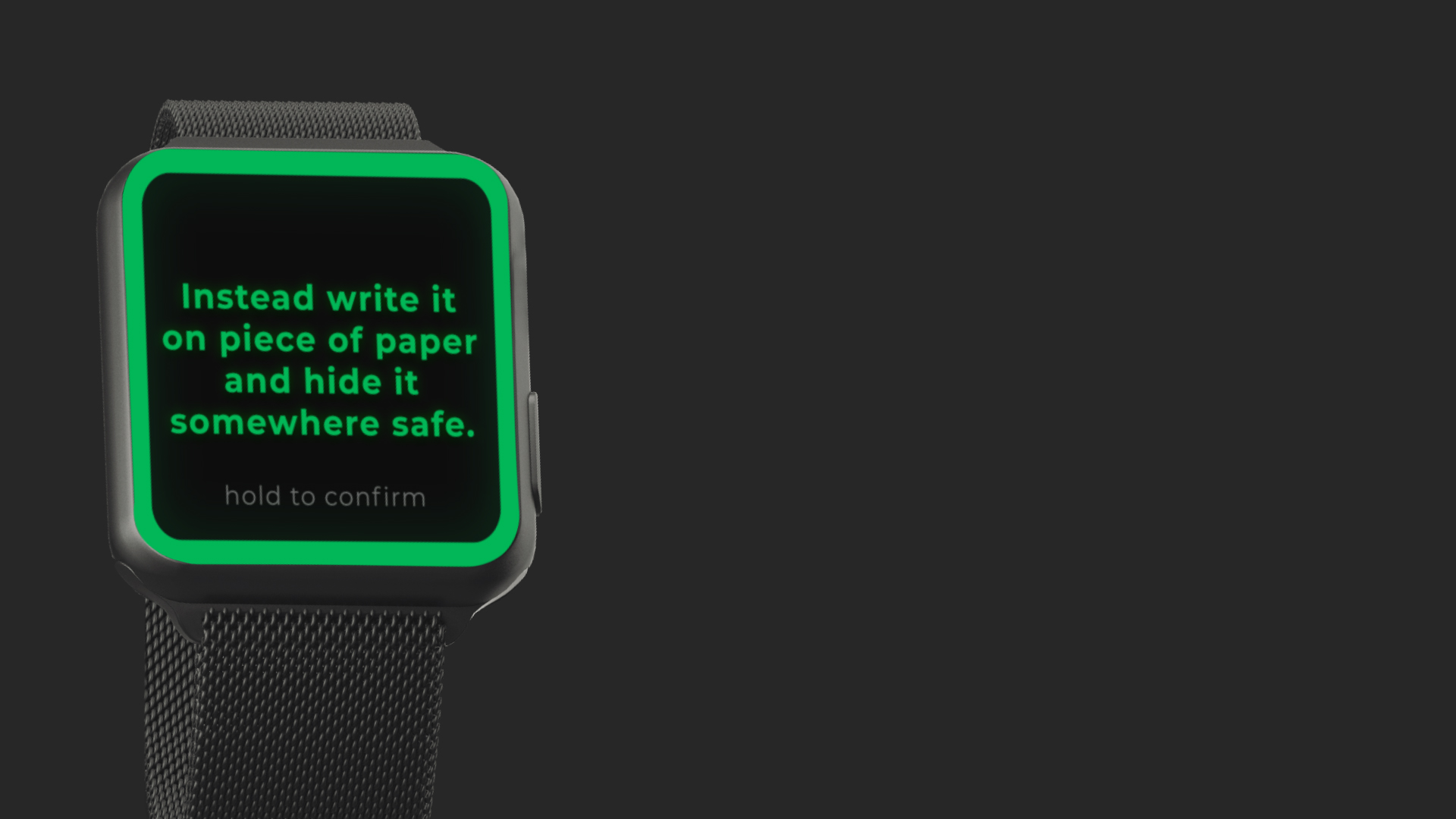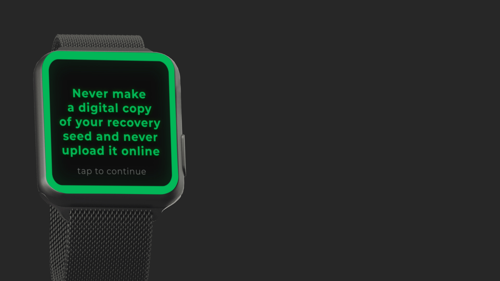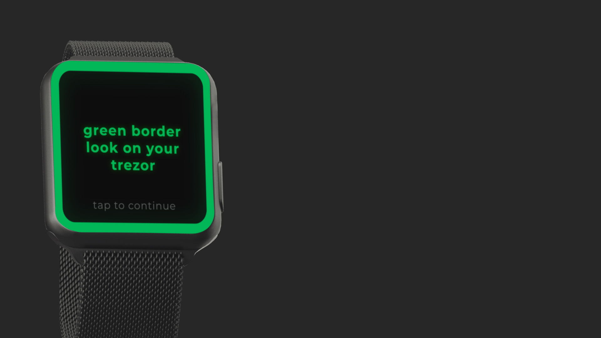 Jedná se o UI pro kryptoměnovou peněženku Trezor / SatoshiLabs. UI je založené na intuitivním chování (tap, hold, scroll, swipe) a animacích. Nejste si jisti, kam se koukat? Pro to je tu barevný rámeček, který indikuje současný stav. Máte špatné periferní vidění? K tomu vám pomůžou vibrace. Při odpojení zařízení od počítače jsou funkce na potvrzování nedostupné a trezor funguje jako hodinky. Takže může oslnit na večeři, že nosíte kryptoměnovou peněženku.