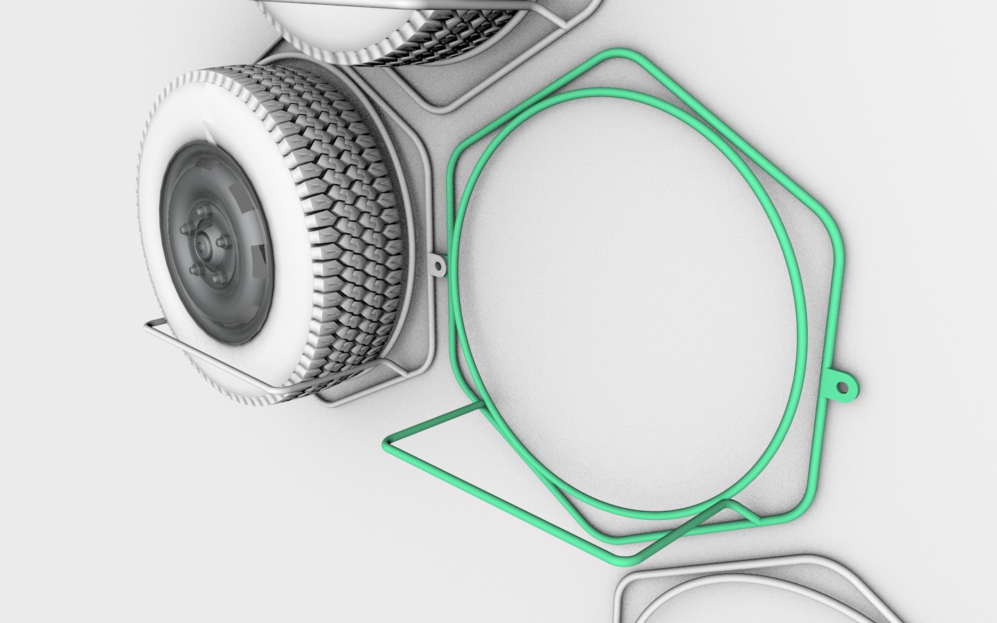 Zadání pro firmu UVAX. Drátěnný závěsný modulový systém pro uskladnění pneumatik.
