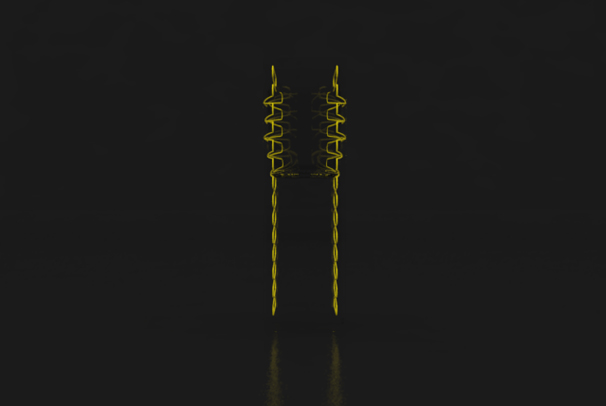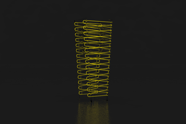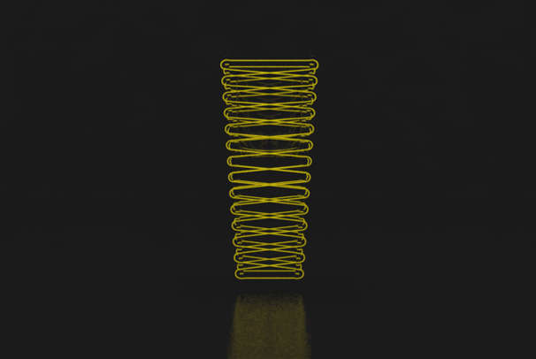 Váza ze dvou plastových desek propojená pomocí umělohmotné struny.