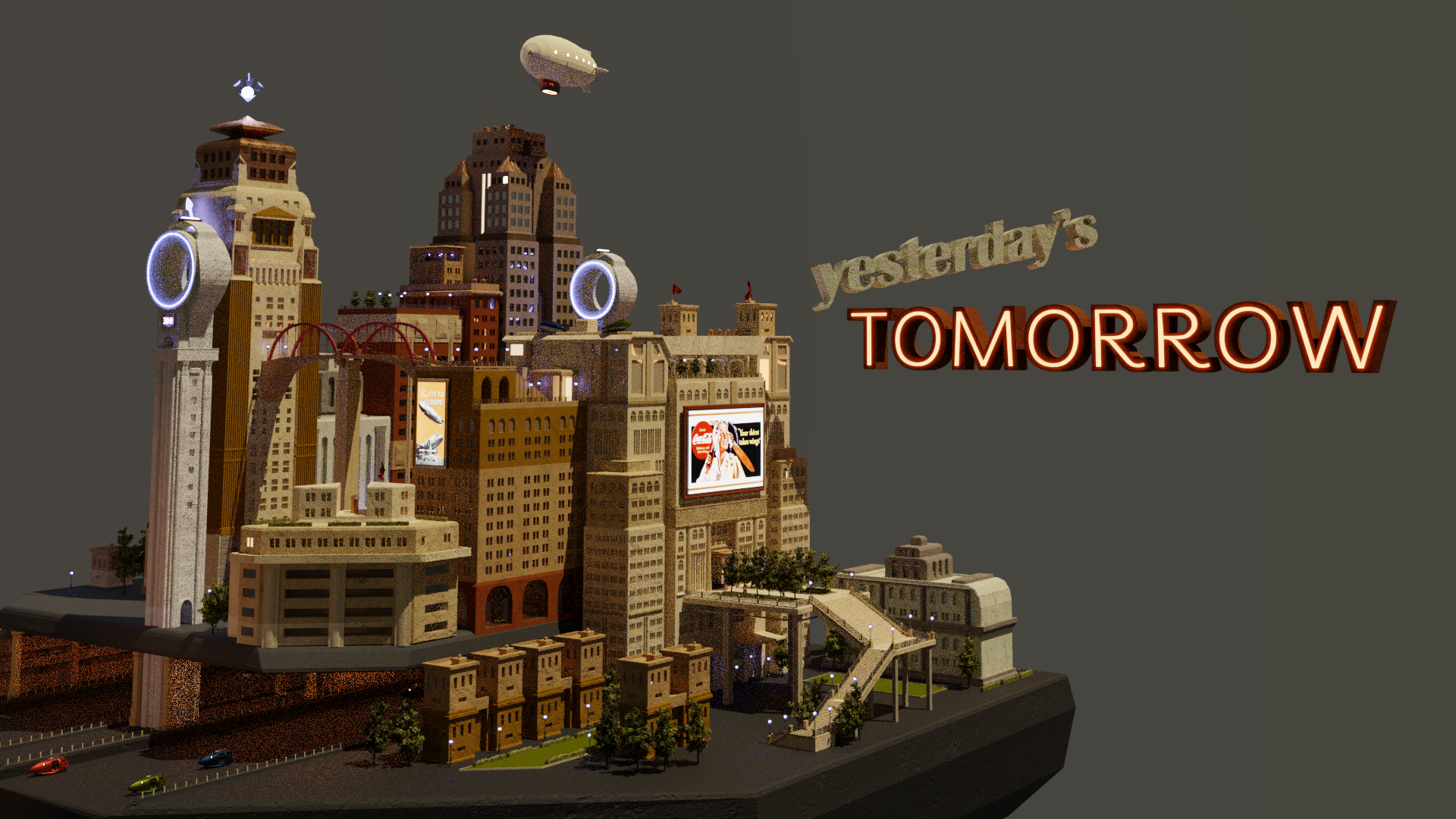 Jako klauzurní práci jsem se rozhodla zpracovat téma retrofuturismus v podobě animovaného 3D dioramatu. Projekt Včerejší zítřky vizualizuje, jak si lidé ve 30. letech 20. století představovali budoucnost – hromadná doprava na bázi elektromagnetických polí, víceúrovňové ulice a vzdušný dopravní ruch jsou zasazeny do meziválečné městské estetiky mrakodrapů a cihel. Všechny objekty jsou ručně modelované, jediný add-on jsem použila pro základní vrstvu materiálů.