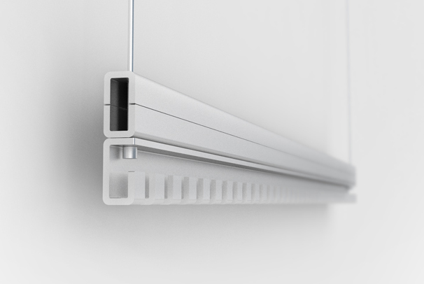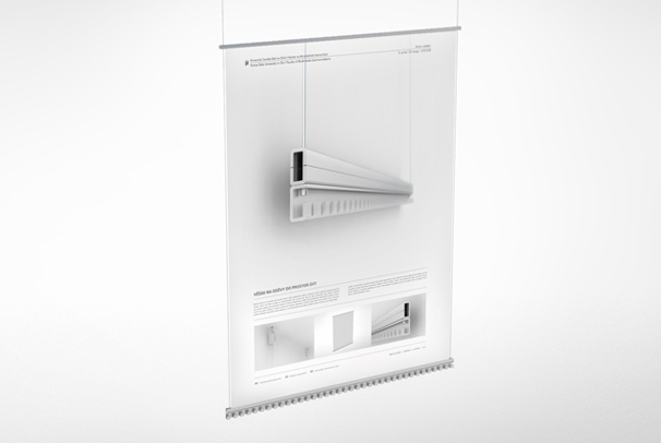 Věšák na oděvy byl navržen do interiéru Ústavu vizuální tvorby ve Zlíně. Jeho celkový charakter byl inspirován venkovními stropními rozvody kabelů, které jsou vedeny po stropech všech ateliérů a prostorech ústavu. Hlavní myšlenkou bylo využít těchto rozvodů a pomocí závěsného systému na něj umístit tento věšák. Pokud není možné využít k zavěšení tyto rozvody, lze celý závěsný systém upevnit přímo do stropu pomocí hmoždinek. Věšák slouží současně jako stojan na poster. Díky vytažení vrchního dílu směrem nahoru, dojde k vytvoření prostoru pro umístění posteru. Věšák je upevněn pomocí karabin a dvou ocelových lan o průměru 2mm na výše uvedený systém rozvodů. Věšáky s lištou pro fixaci posteru jsou vyrobeny z plechu o tloušťce 2mm. Šířka věšáku je 730mm. Věšák obsahuje 37 háčků pro zavěšení oděvů.