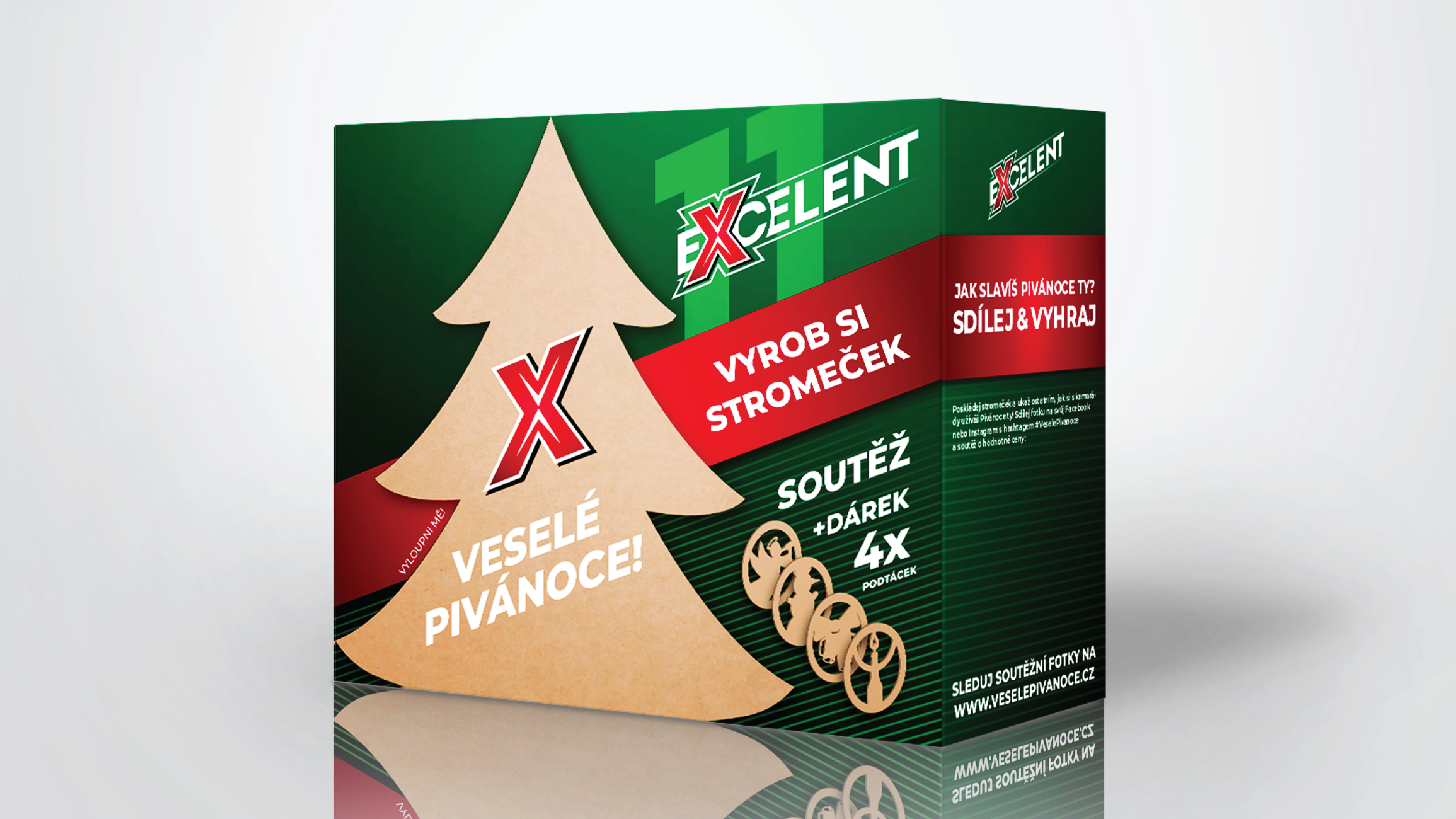 Návrh reklamní kampaně pro Excelent na letošní Vánoce. Cílovou skupinou jsou mladí lidé, 18-30 let. Zaměřil jsem se především na multipacky 8ks, na jejichž krabici jsem umístnil vyloupnutelnou kartonovou maketu vánočního stromečku. V balení budou čtyři vyřezané podtácky, které můžou sloužit také jako ozdoba na již zmiňovaný stromeček. Zákazníci si buou moc svou oslavu Vánoc s Excelent stromečkem vyfotit