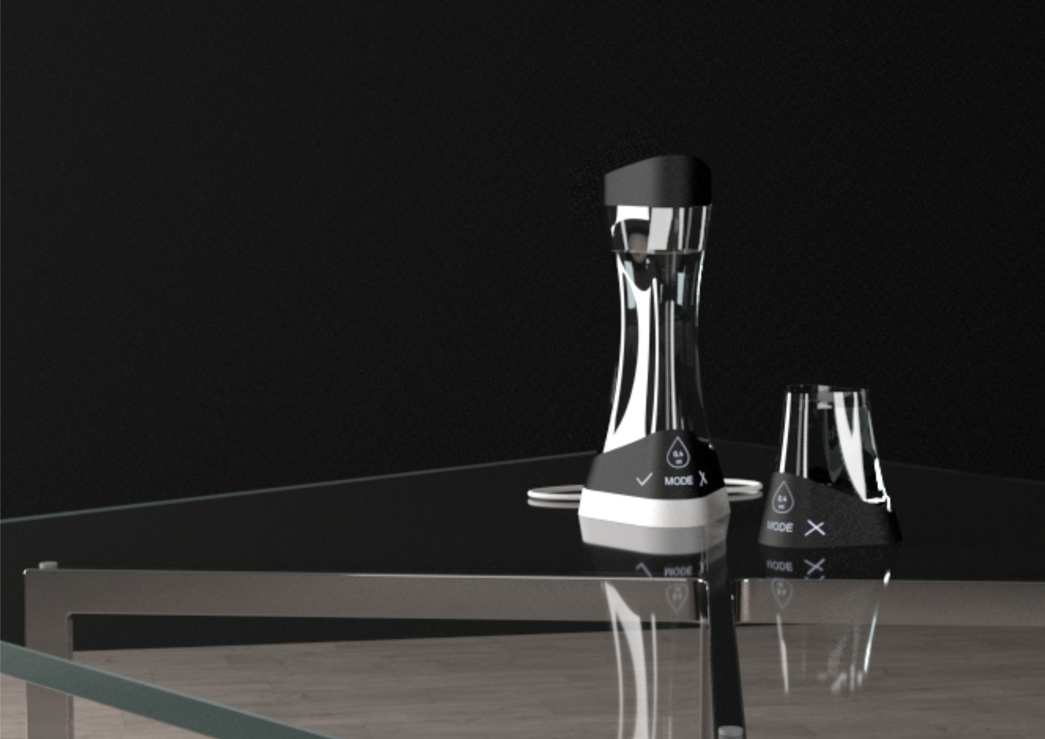 ViBo je sada láhve a sklenice, které obsahují ve stojánku vibrační motorek, který se po určité době spustí a upozorní uživatele, že je potřeba se napít.