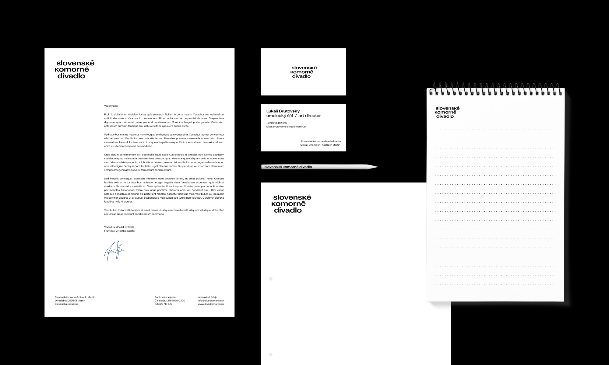 Slovenské komorné divadlo je činohernou scénou, ktorú charakterizuje viac ako 75-ročná tradícia, kvalita a dôležitá úloha vo formovaní slovenského divadelníctva ako aj spoločnosti. Redizajn si dáva za cieľ toto odzrkadliť a pritom rešpektuje možnosti divadla. Je zameraný na digitálnu komunikáciu. Vyznačuje minimalizmom a je tvorený dynamickým variabilným systémom za pomoci farebných akcentov, pretože divadlo vyvoláva rôzne emócie a nie je jednotvárne. Z predošlého loga si prepožičiava portál viditeľný v plagátoch a animáciach.