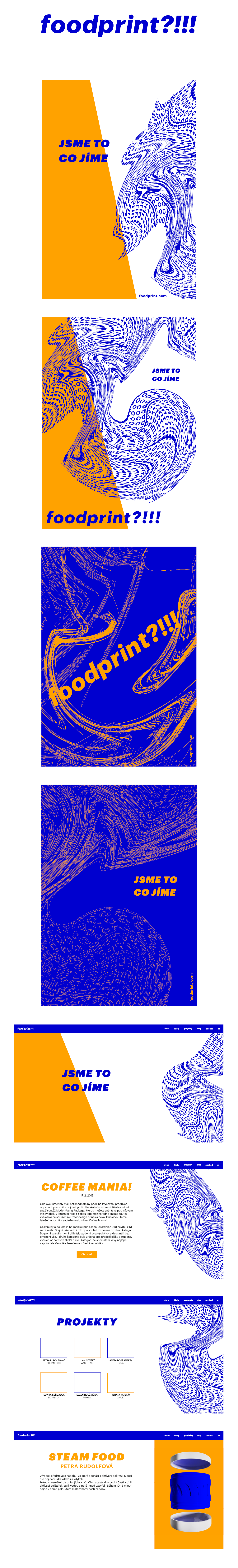 Podstatou vizuální identity foodprintu je zaujmout diváka natolik, aby se mu prsty kroutily touhou proscrollovat všechny projekty a strávit na stránce co nejvíc času (jak jinak), přičemž se snažím zaujmout především výraznou barevností (kombinace dvou barev – modré/oranžové) vyjímající se v poměrně jednoduchém stylu doprovázeném dynamickým vzorem.