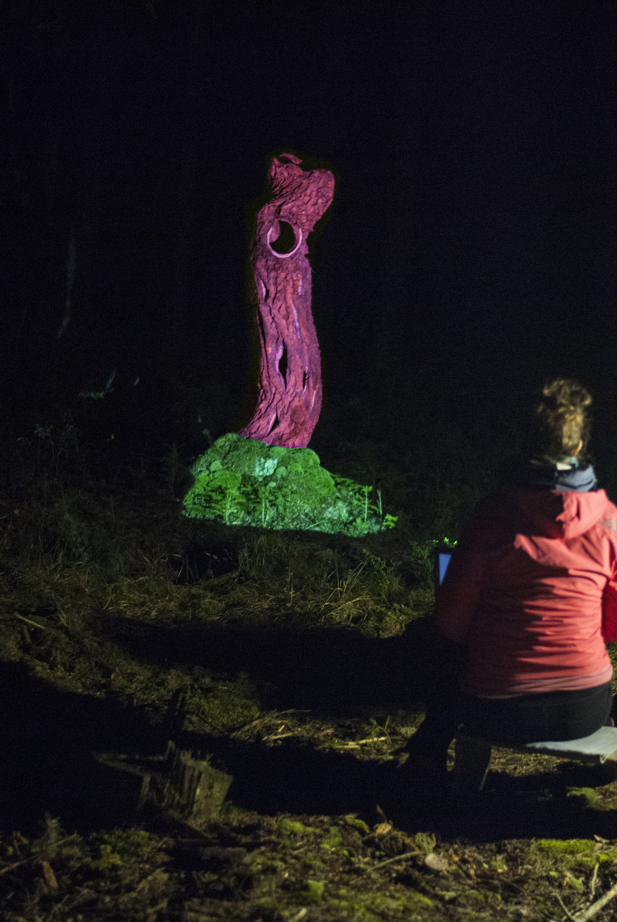 Interaktivní vizuální instalace s využitím video mappingu v otevřeném prostoru, prostřednictvím které se snažím poukázat především na daný prostor, na genius loci daného místa. Ukázat paradox naší mysli, kdy každý vidí předměty v prostoru, ale nikdo si nevšímá samotného prostoru. Protože nicota — nic — prostor, se nemůže stát předmětem poznání, rozhodla jsem dát prostoru existenci. „Existovat“ znamená doslovně vystupovat. Vytvořila jsem proto objekt, jakousi sochu, která má ukázat to, že ačkoliv prostor sám nemá žádnou existenci, umožňuje existovat všemu ostatnímu. Tedy i nám lidem. Co se však stane, když přestanete pouze pozorovat objekt, předmět v prostoru a začnete věnovat pozornost i samotnému prostoru? Abych tuto iluzi naší mysli mohla ukázat, použila jsem v instalaci nášlapná tlačítka, která pak mění celé dění v kontextu prostoru a času. Chtěla jsem tím vyjádřit to, aby si lidé uvědomovali prostor kolem sebe. Nepřemýšleli o něm, jen ho jednoduše vnímali.