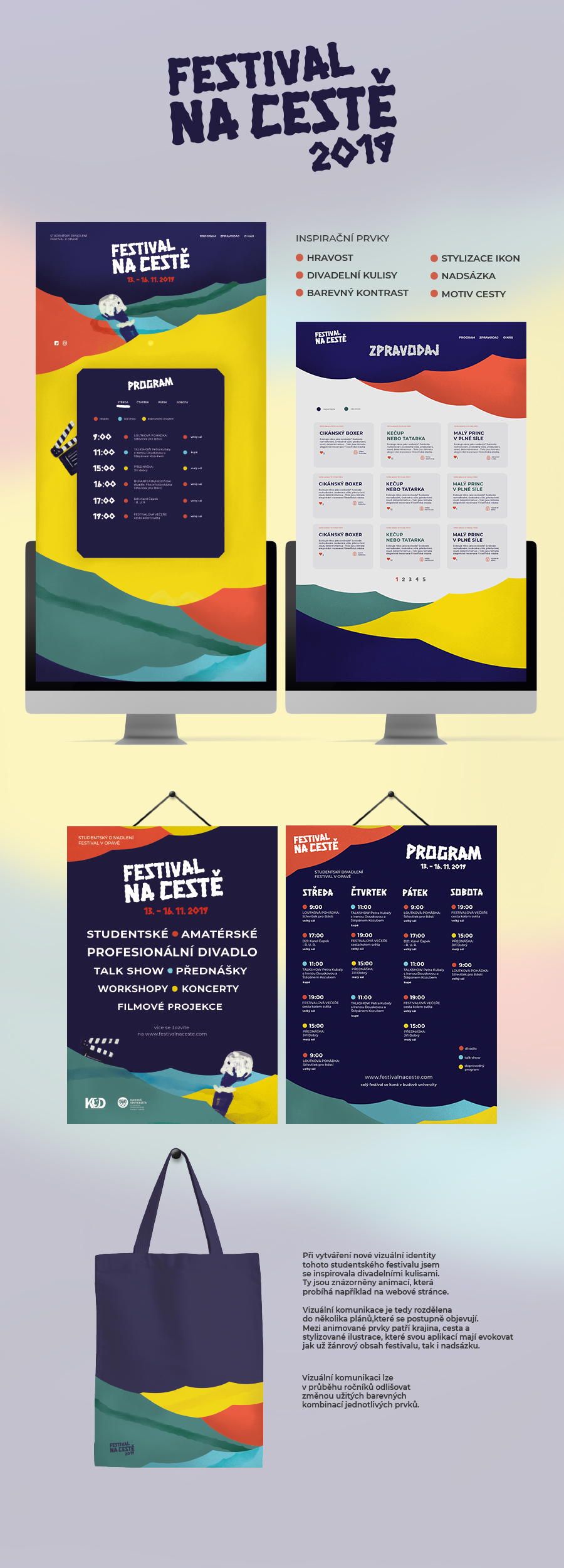 festivalu jsem se inspirovala divadelními kulisami. Ty jsou znázorněny animací, která probíhá například na webové stránce.