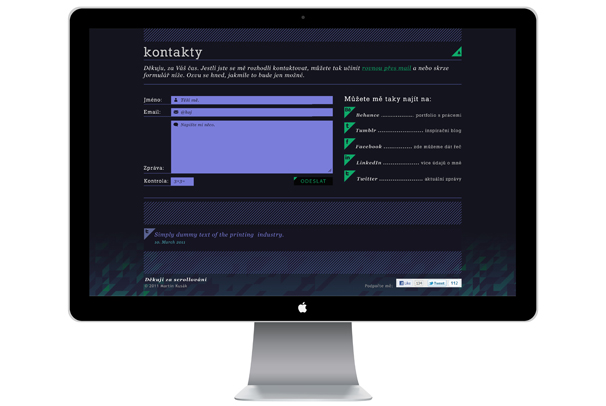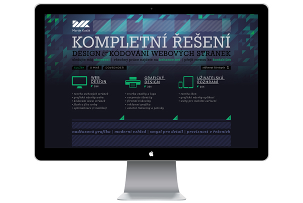 a webdesigner. Ke vzniku této prezentace bylo nejprve zapotřebí navrhnout značku a identický vizuální styl, který koresponduje se samotnou tvorbou autora. Následně tento styl uplatnit do odpovídajících aplikací