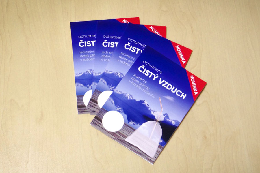 Úkol jsem zpracovala jako reklamu na balenou vodu ve formě stojánku na stůl. Abych upozornila na zbytečnost kupování vody, použila jsem místo lahve sáček s čistým vzduchem.