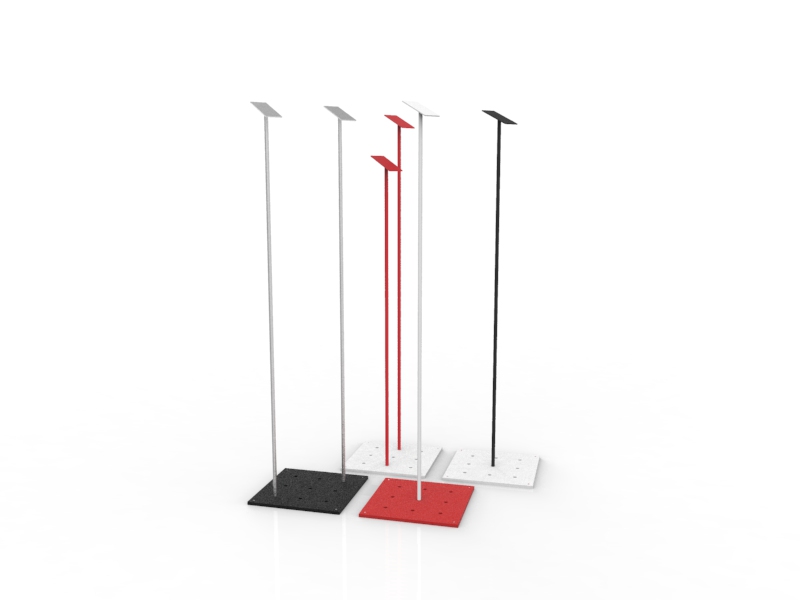 Stojan je určený na boty bez podpatku. Možnost využít na půlpár, pár a případně na další produkty. Stojan tvoří kovová tyč s destičkou, na které je umístěna protiskluzová podložka a je vysoký 120cm. Podstavu tvoří dvě vrstvy plexiskla 30x30cm.