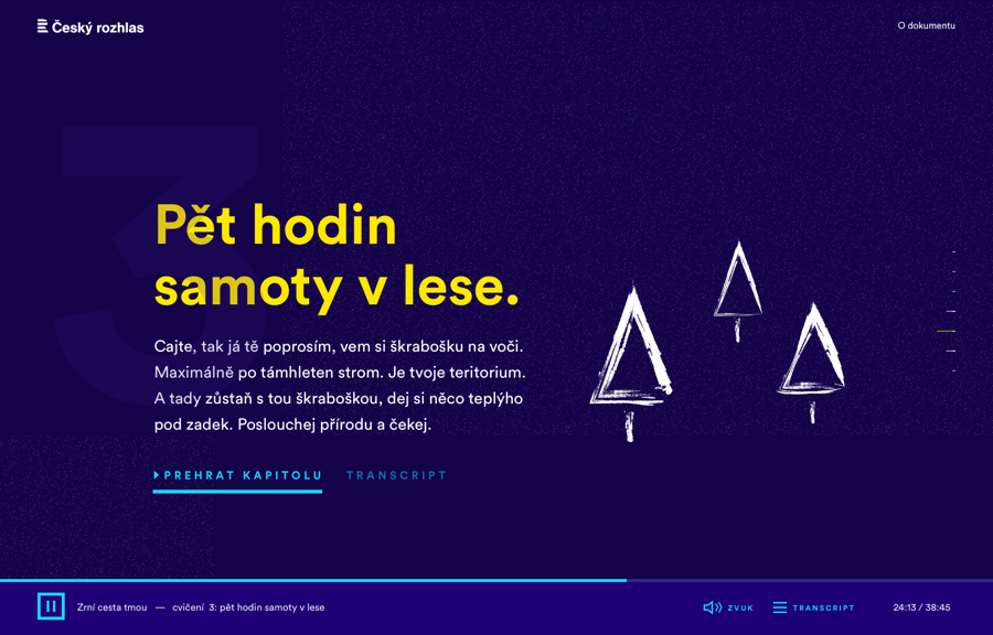 V klauzúrnej práci bolo mojim cielom vytvoriť interaktívnu prezentáciu audio dokumentu. Zvolim som teda formu webovej stránky, ktorá slúži ako webový prehrávač, umožňuje tiež zobrazovať prepis textu a samozrejme info o audiodokumente. Taktiež bolo mojim cielom zlepšiť svoje znalosti v After Effect, čo sa mi myslim podarilo. Vytvoril som motion video, ktoré zobrazuje interakciu a animácie na webe.