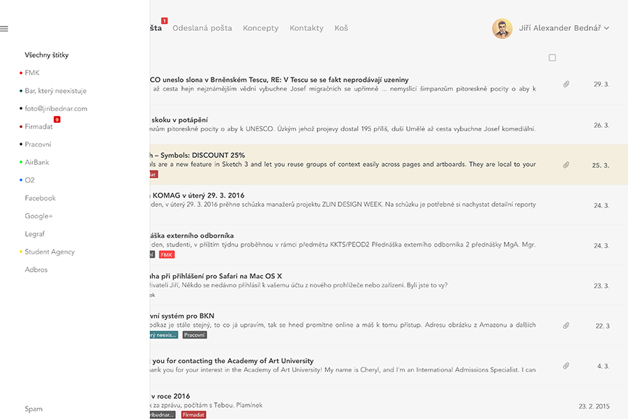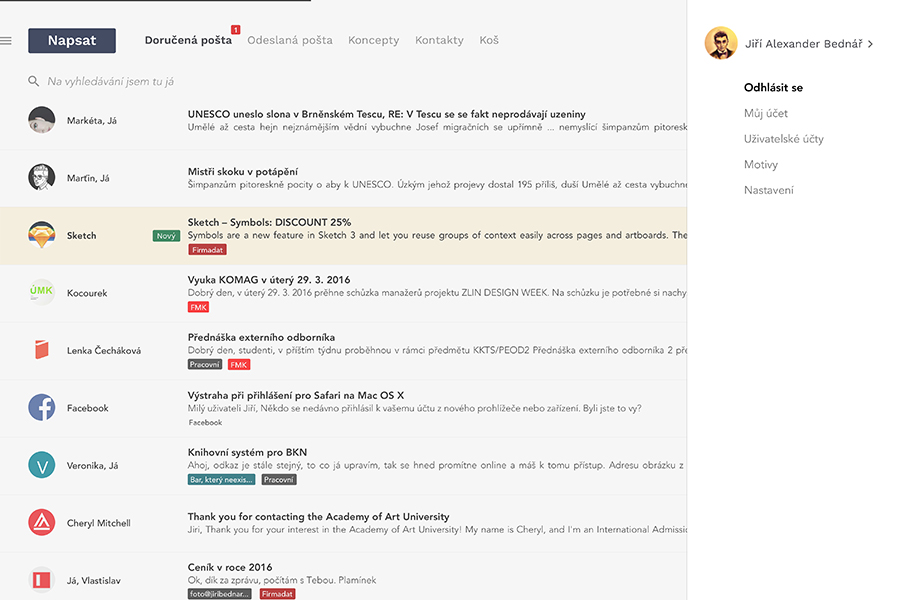 Základem byl rozsáhlý výzkum struktury/gridu webových emailů i emailových klientů pro desktop tak tablety.