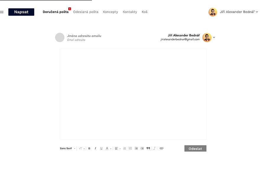 Úkol vytvoření nového rozhraní pro webový email (dostupný pouze přes prohlížeč).
