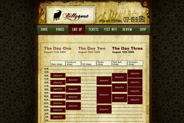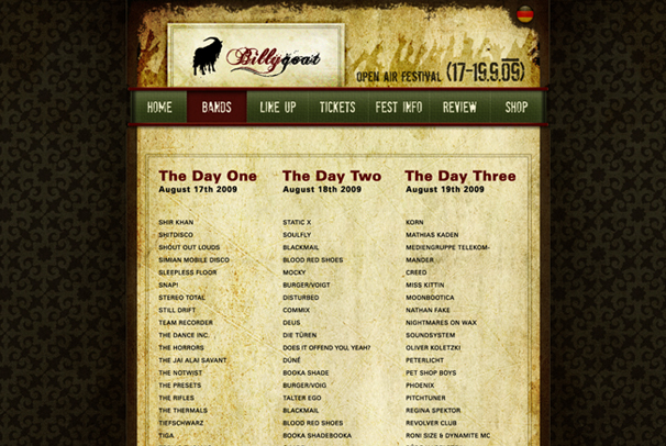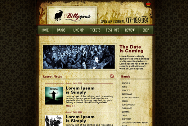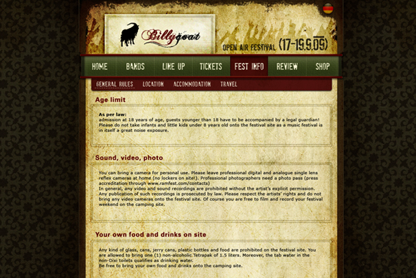 Webová prezentace smyšleného rockového festivalu "Billygoat".