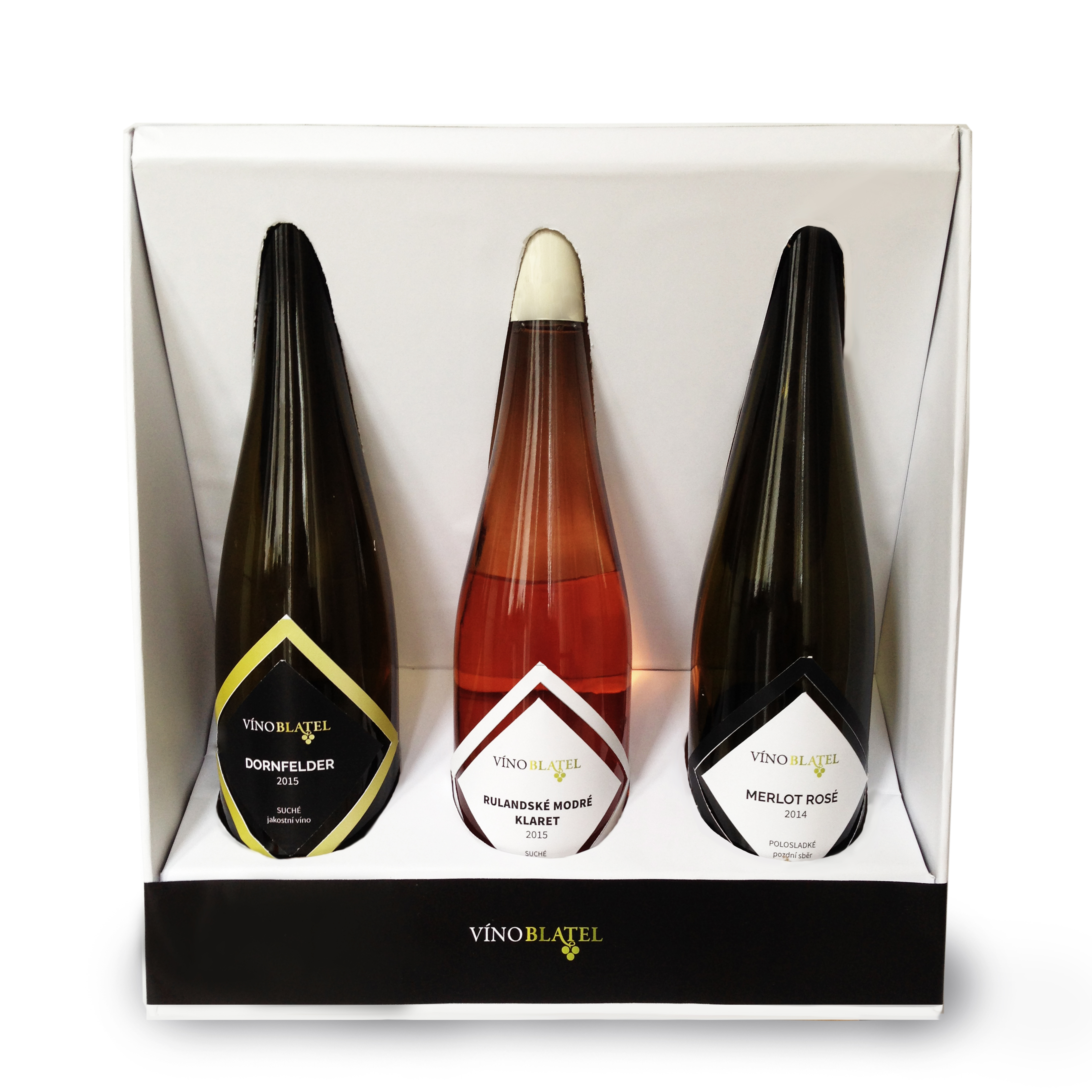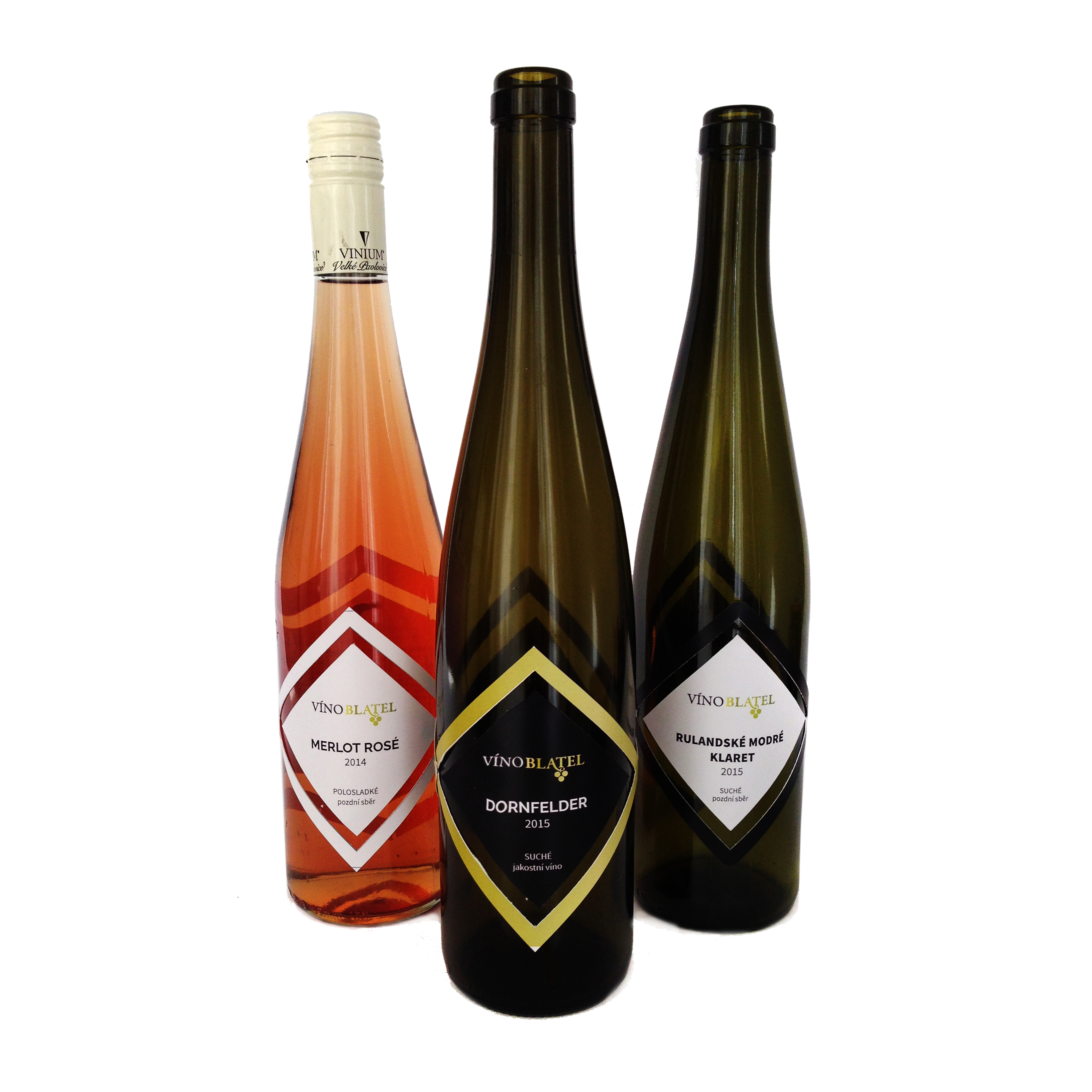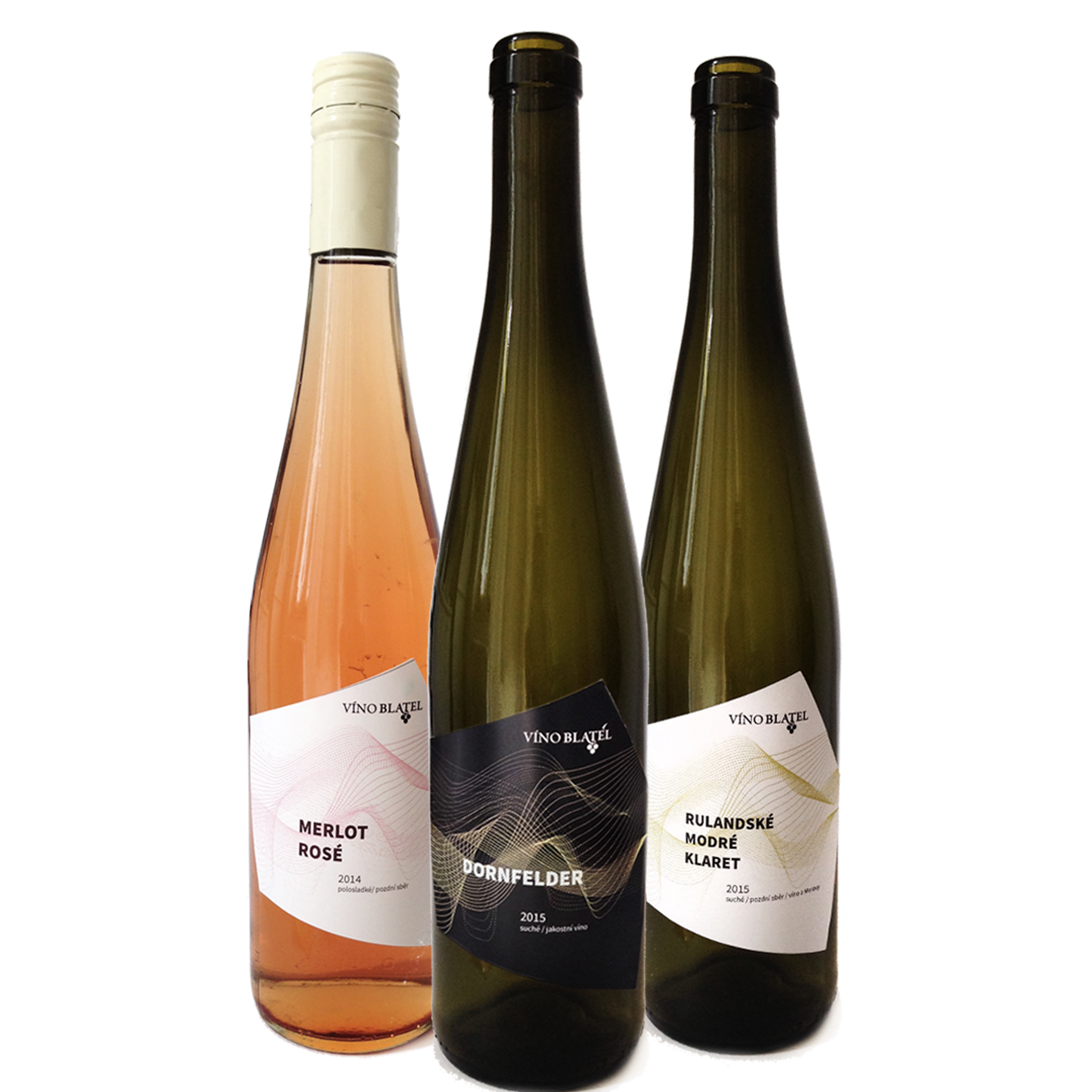 Spolupráce na obalu a etiketě k vínu Blatel se studentkou grafického designu. Zvolená grafika je velmi jednoduchá a dobře čitelná. Obal na láhve vína je taktéž jednoduchý. Jedná se především o dárkové sety a obal plní hlavní roli v dobrém upevnění láhve. Grafika a barevnost obalu koresponduje s etiketami.
