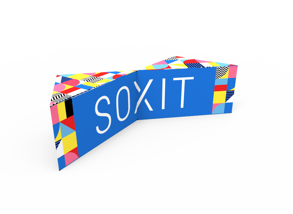 Obal vznikl na téma „Radost z rozbalování“ od zadavatelké sou- těže Model Young Package. Tato papírová krabička slouží jako dárkové balení pro čtyři páry ponožek české značky Soxit. Jeho potisk podporuje danou kolekci ponožek, které se právě v balení nacházejí. Jeho základním tvarem je kvádr, rozdělený na čtyři trojúhelníkové komory pro jednotlivé páry ponožek.
