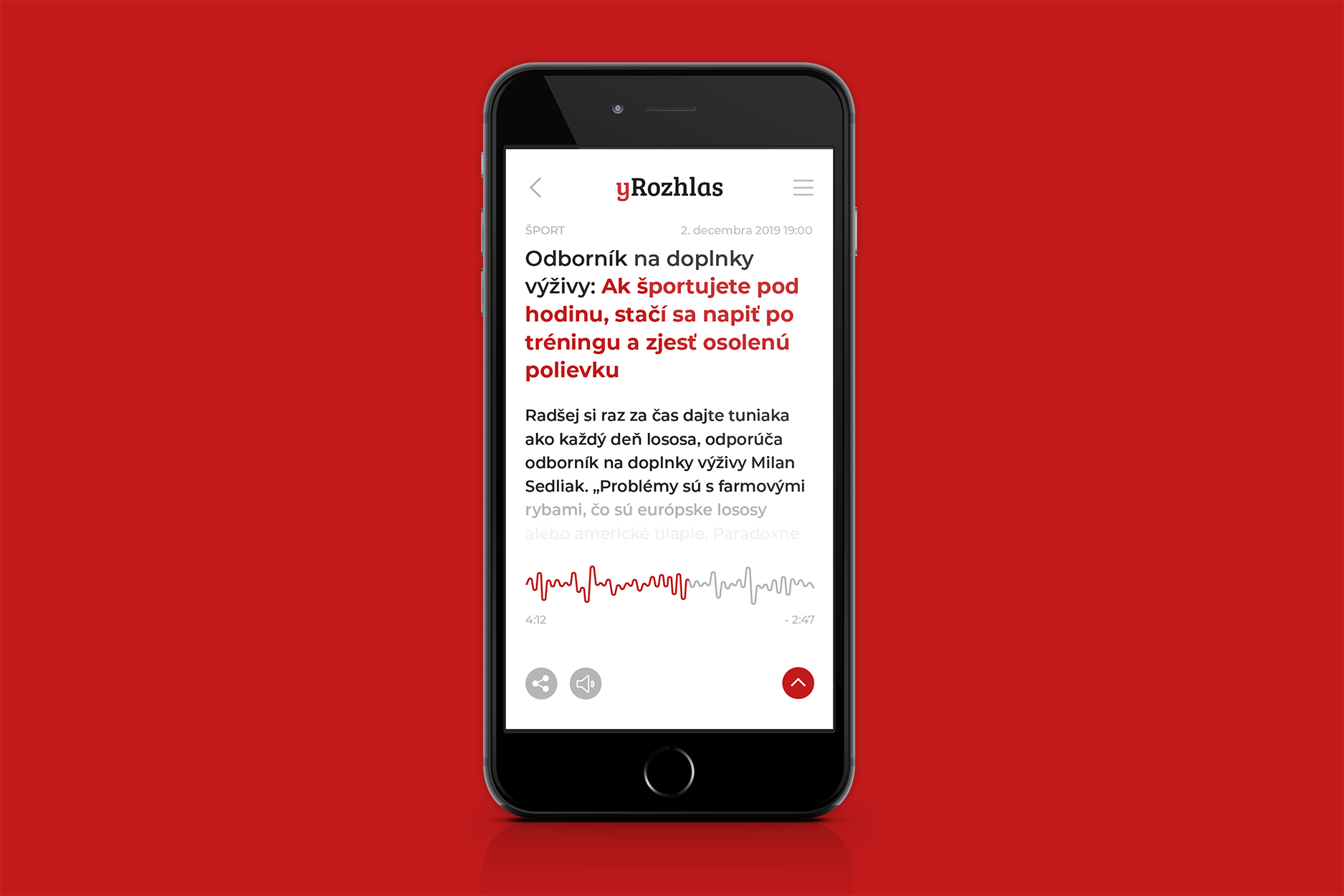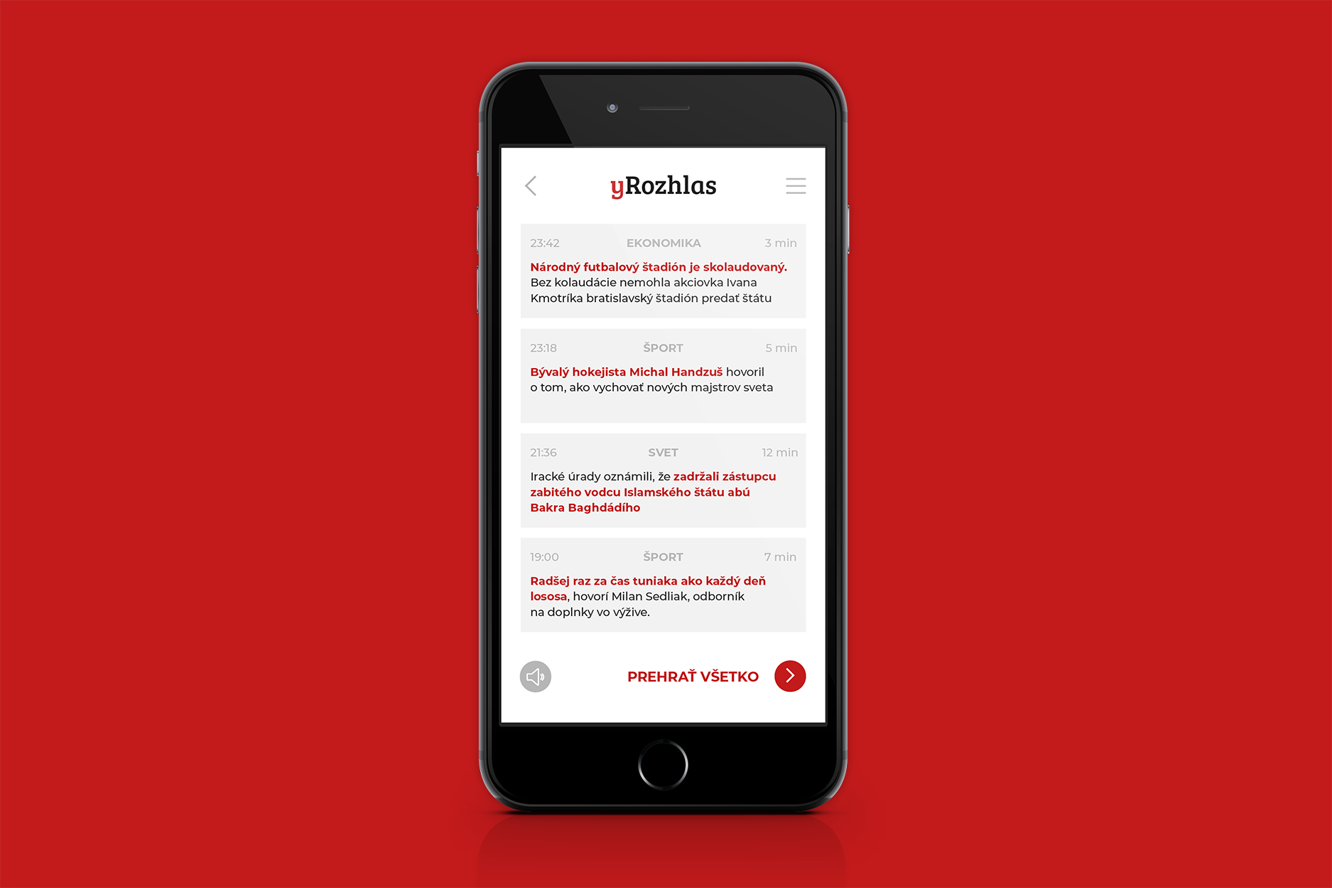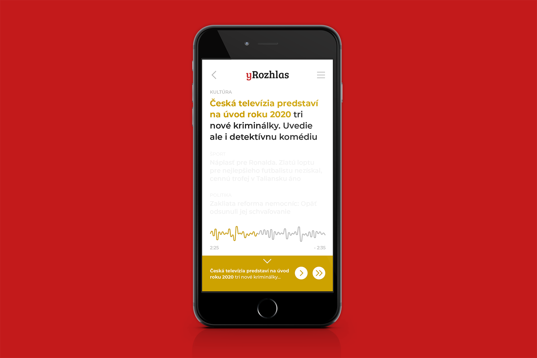 Personalizovaný prehrávač ako aplikácia Českého rozhlasu určená mladým poslucháčom - yRozhlas. Aplikácia ponúka personalizovaný ale aj nefiltrovaný obsah a aktuality v rôzych časových intervaloch, ktoré si poslucháč určí podľa toho, koľko času má na vypočutie. Jednoduchý dizajn bez zbytočných obrázkov (keďže sa jedná primárne o prehrávač) je obohatený o titulky.
