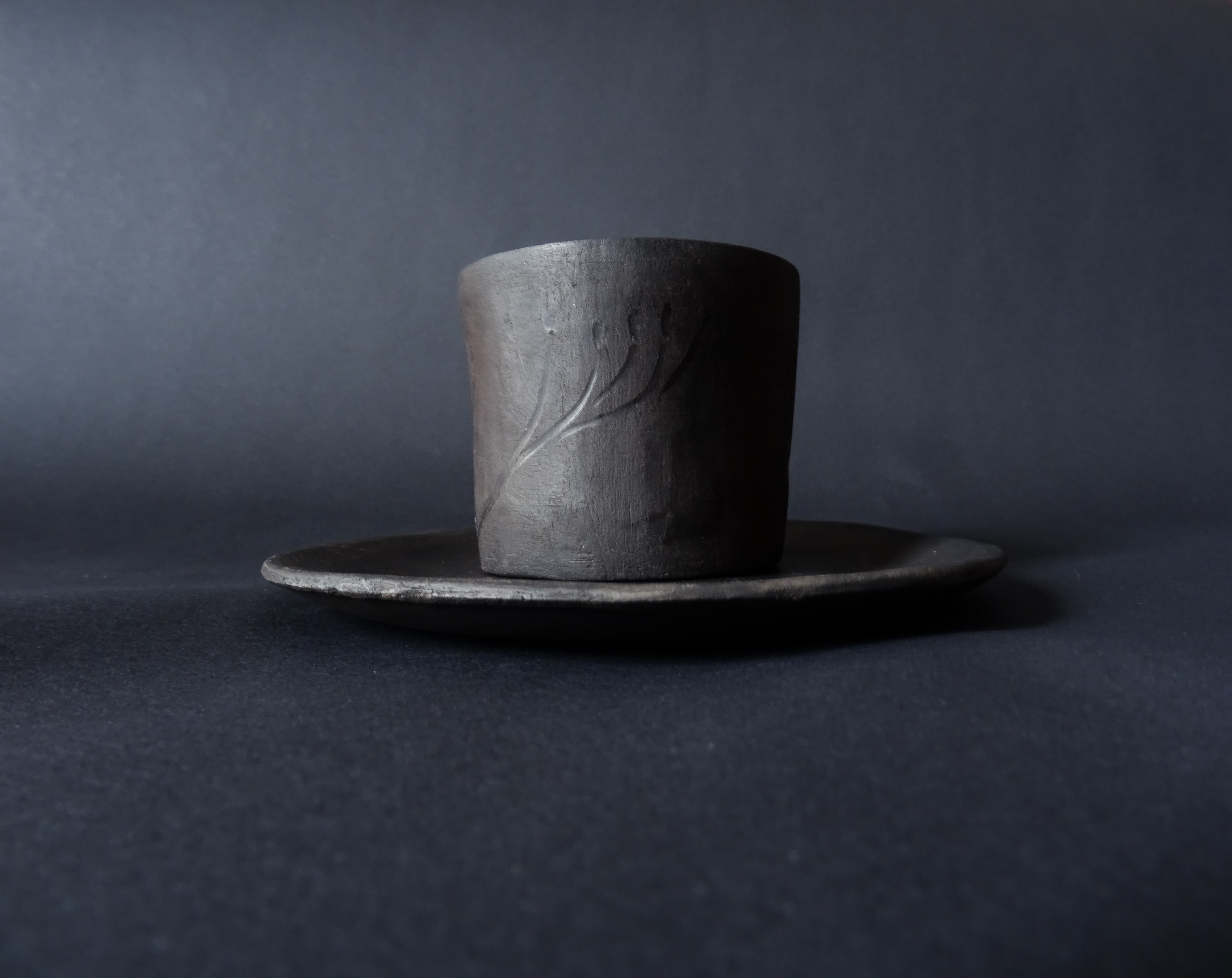 Pro projekt Krásná práce byl vytvořen za technologií zakuřování set šálků na kávu. Prvkem je leštěným dekor inspirovaný lučními rostlinami.