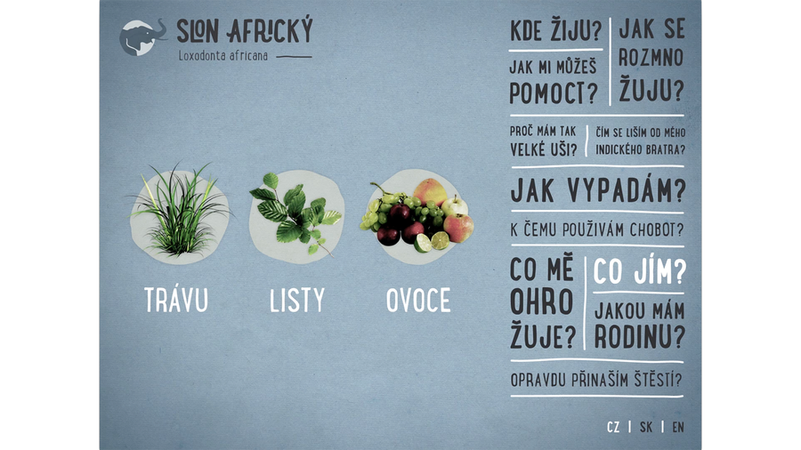 The task was to design a motion infographic of chosen topic. I asked myself a question: how should modern, 21. century zoo animal info panels look like? My idea was to change each panel for tablet. To explain how the system works I designed and animated a panel for elephant. The full animation can be viewed